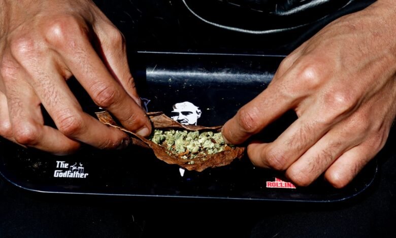 A man prepares a marijuana cigarette at Washington Square Park on April 20, 2023 in New York City.